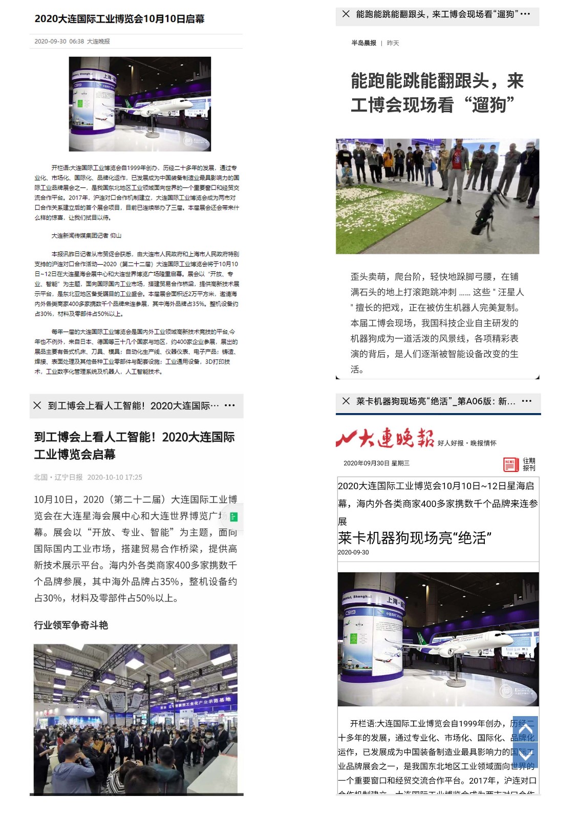 展会吸引了人民网、人民日报、央广网、辽宁日报、东北之窗、大连电视台、大连广播电视台、半岛晨报、大连晚报等国家、省、市媒体近百余家争相报道,从国际贸易沟通到高新技术展示,再到云展会对展会服务功能的提升,进行多角度全方位多时段的大篇幅报道。